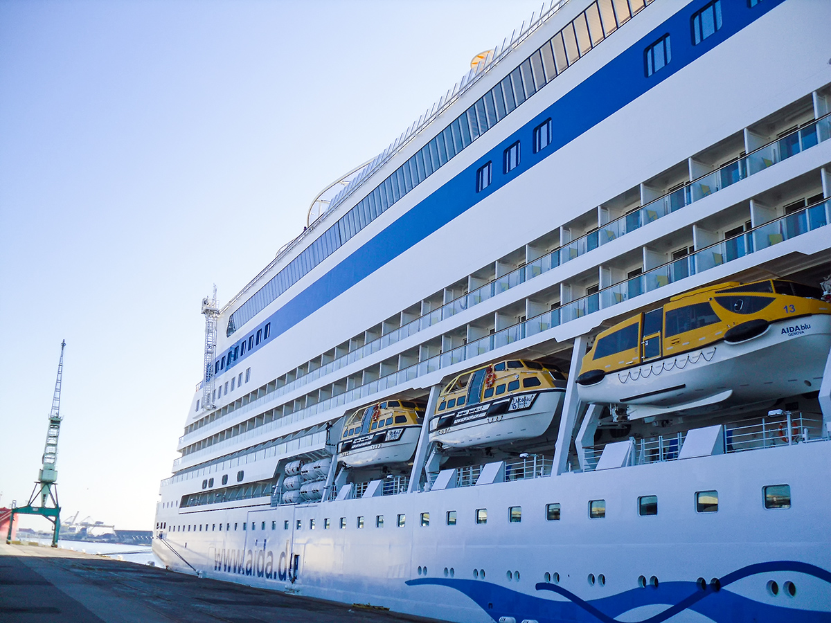 Außenansicht des Kreuzfahrtschiffes AIDAblu von AIDA Cruises